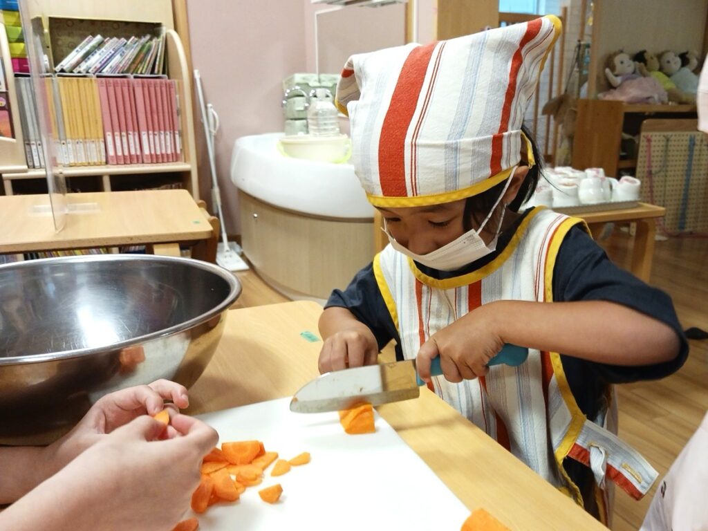 待ちに待った夕涼み会がありました!みつばち組の特権行事です。夜の公園に行くためのランタン作りから一日が始まりました。