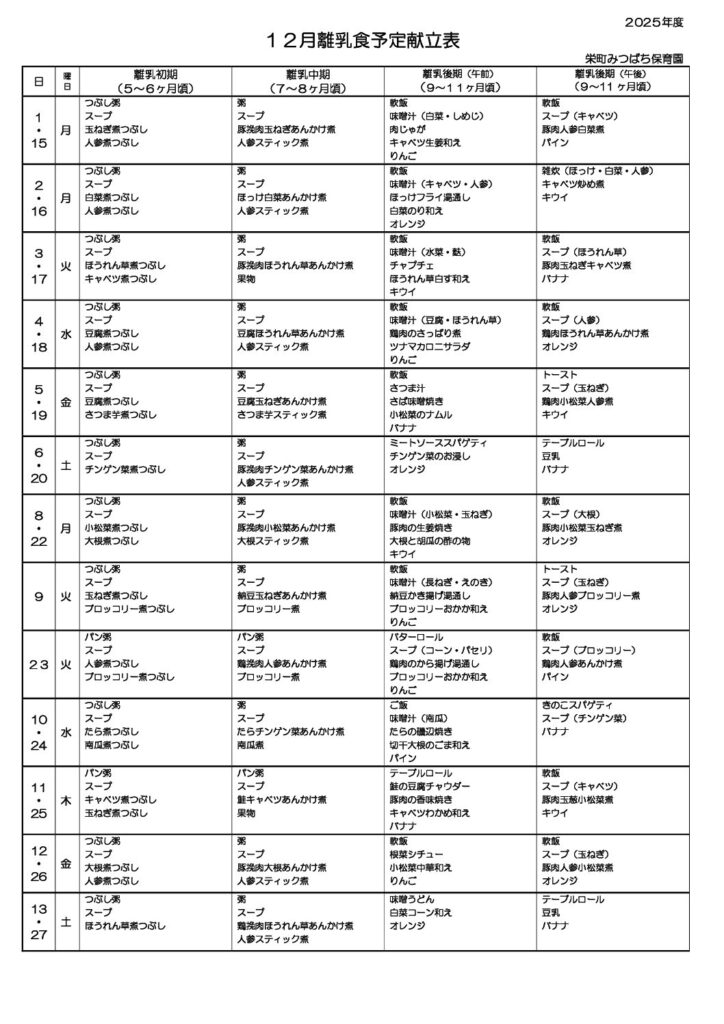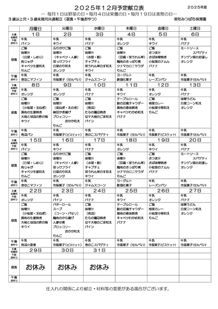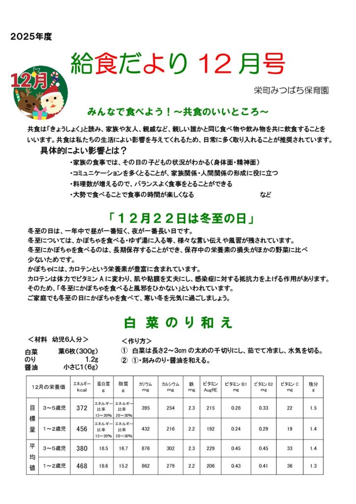 HOME > お知らせ一覧 > 12月給食便りと献立表