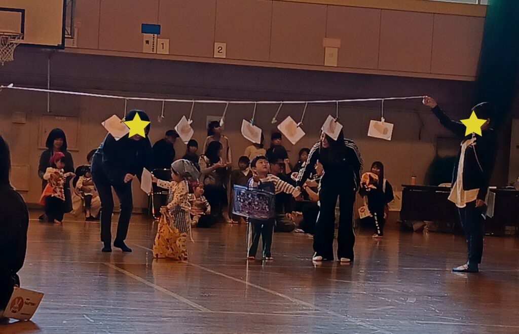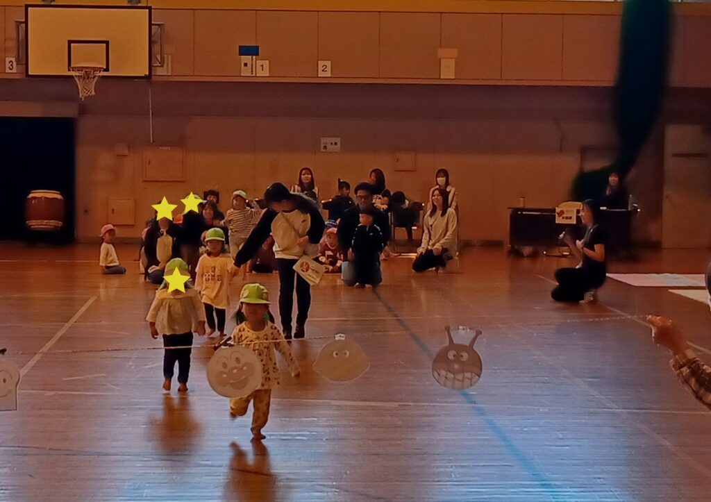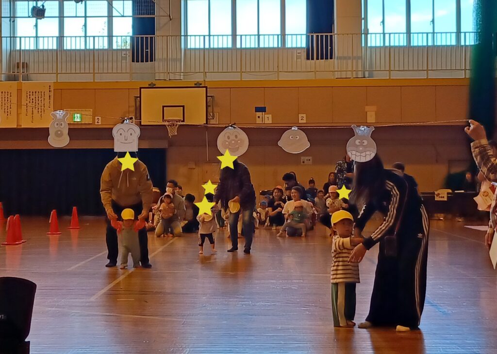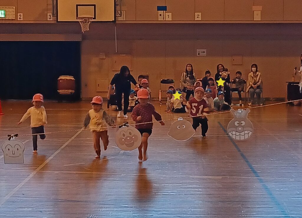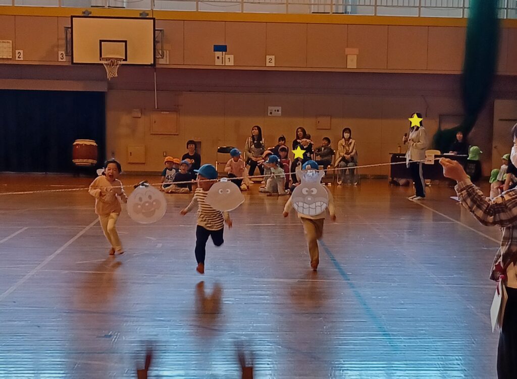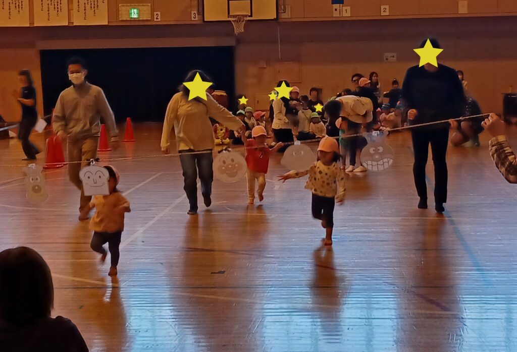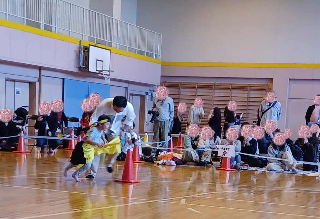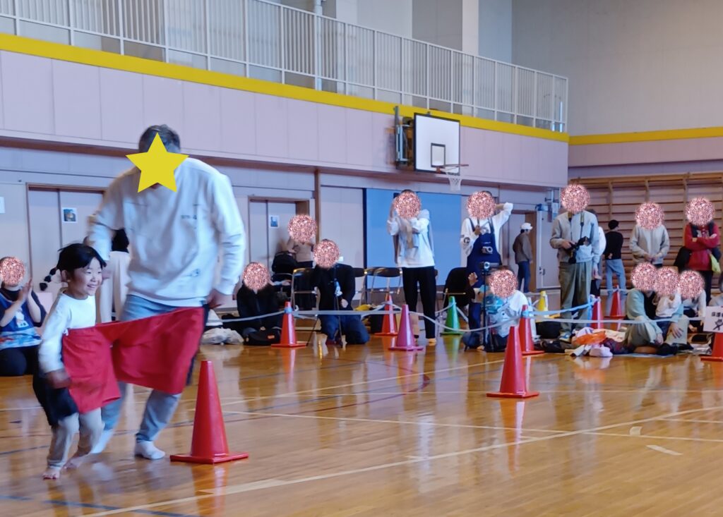 そして最後は幼児クラスの親子競技、デカパンリレー!親子で呼吸を合わせて走る姿は、見てるお客さんも私たち職員も応援に力が入り、大盛り上がりでした‼✨